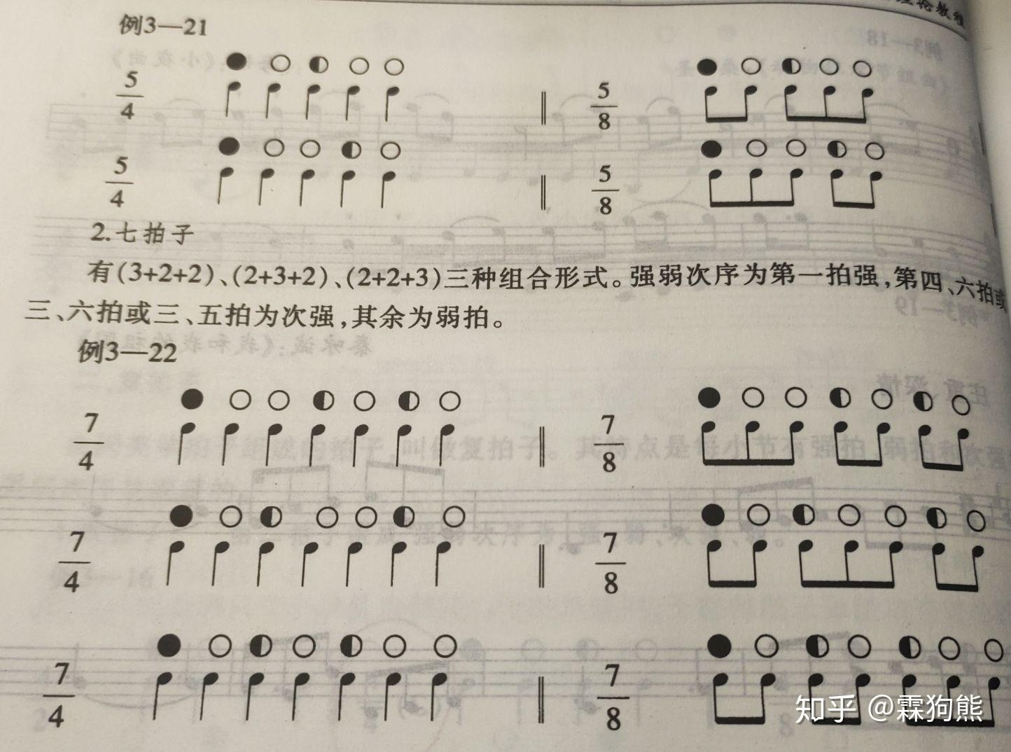 接下来的图片呢分别是二拍子,三拍子,4拍子,6拍子,9拍子,12拍子,以及混合拍子中的5拍子和7拍子,这一块儿我不展开来讲,有新的同学可以去看图表进行自主学习,用你聪明的脑子来体会上面的文字,你只听我冷冰冰的讲,是没有意思的,想要开发你的脑子,就得看图自己想。