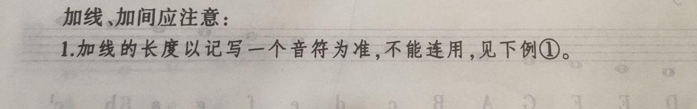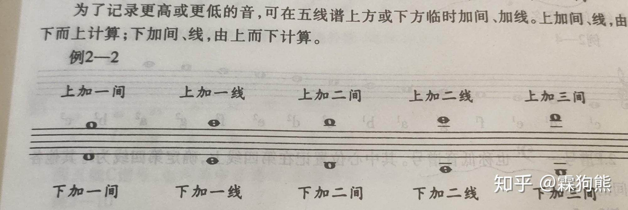 我知道大多同学可能不愿意看图,那就让我再说一遍,为了记录更高或者更低的音,可在五线谱上方或者下方临时加间加线,加上间,线由下而上计算;下加间线,由上而下计算。(说白了就是对称,你这明白了没)